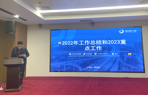 集團(tuán)領(lǐng)導(dǎo)陳飛、羅天宇、許文靜,一卡通公司總經(jīng)理蔣文韜,集團(tuán)全體干部職工等共計100余人參加會議。