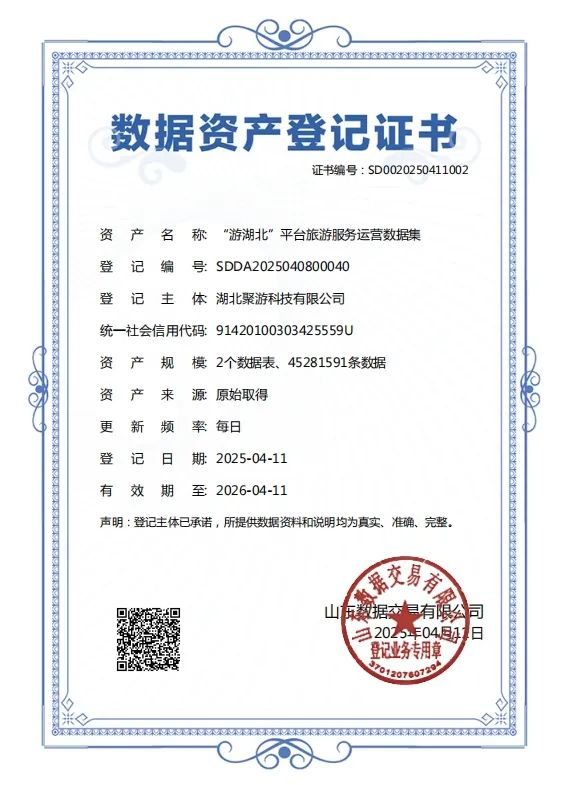 數(shù)旅集團(tuán)實現(xiàn)文旅數(shù)據(jù)資源向資產(chǎn)入表實質(zhì)性突破!近日,湖北數(shù)字文旅集團(tuán)旗下聚游科技公司研發(fā)的“游湖北平臺旅游服務(wù)運營數(shù)據(jù)集”成功取得數(shù)據(jù)資產(chǎn)登記認(rèn)證。該數(shù)據(jù)集源自聚游科技公司承建的湖北省重點文旅數(shù)字化項目“一部手機(jī)游湖北”平臺。依托平臺運營積累的海量數(shù)據(jù),涵蓋游客行為分析、景區(qū)實時流量監(jiān)測、消費偏好畫像、文旅服務(wù)評價等核心維度。通過標(biāo)準(zhǔn)化治理、脫敏處理及合規(guī)確權(quán),實現(xiàn)了數(shù)據(jù)資源向資產(chǎn)的轉(zhuǎn)型,為數(shù)據(jù)資產(chǎn)入表奠定了堅實基礎(chǔ)。